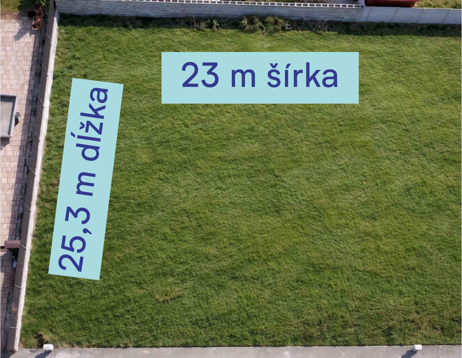 Pozemok má orientačné rozmery: 23 m x 25 m, čo umožňuje efektívne na plánovanie stavby aj využitie záhrady. Rovinatý terén zároveň znižuje náklady na realizáciu výstavby, keďže nie sú potrebné náročné terénne úpravy.